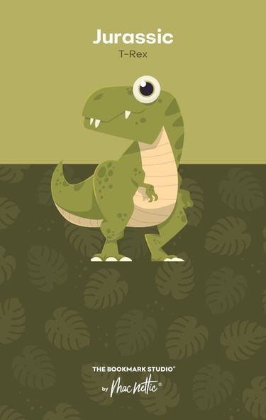 Los dinosaurios vuelven a rugir en tus libros. Diseños divertidos y coloridos de T-Rex, triceratops y otros clásicos del jurásico. Una colección simpática que encantará tanto a niños como a adultos con alma aventurera.