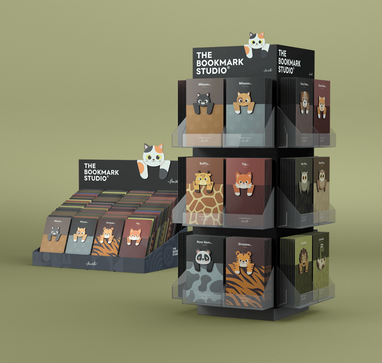 Los puntos de libro magnéticos de The Bookmark Studio son prácticos, resistentes y totalmente personalizables. Cada expositor puede reunir distintas colecciones, adaptándose al estilo de tu tienda o a los gustos de tus clientes. Con sus diseños temáticos, son recuerdos originales que combinan creatividad y funcionalidad.