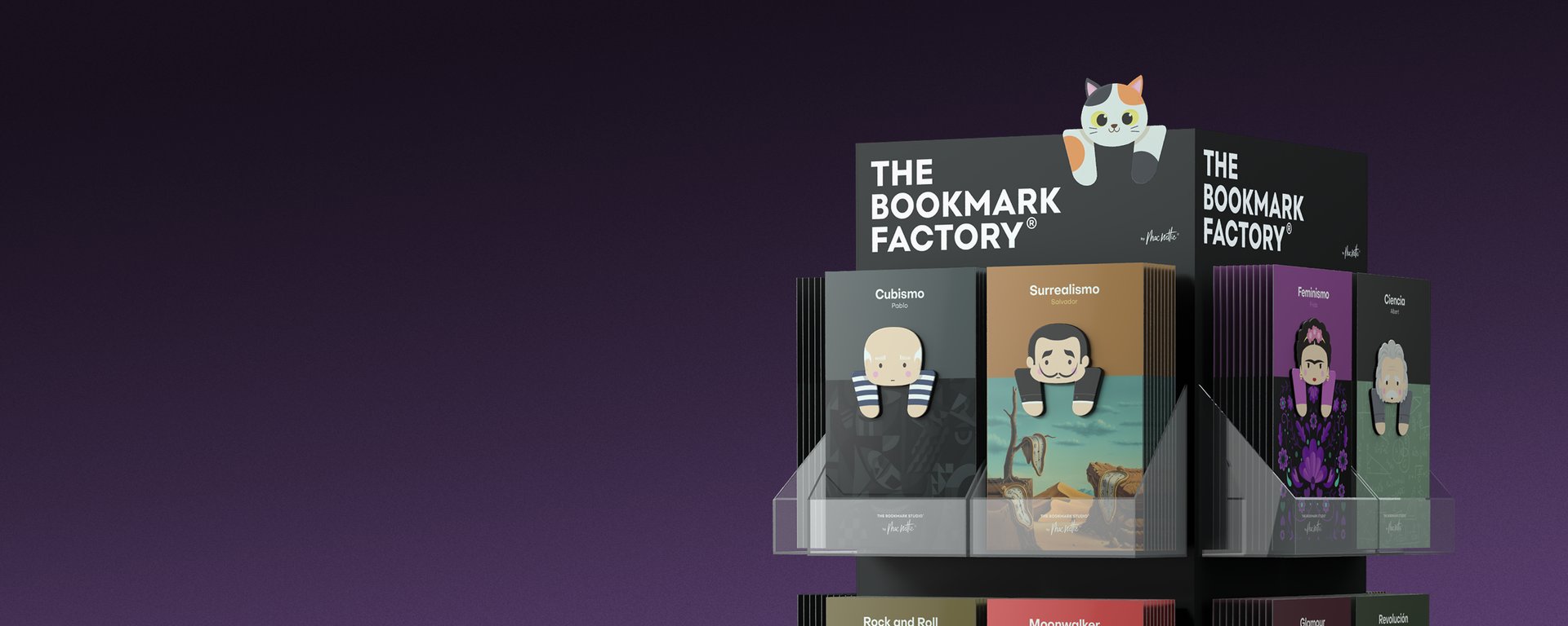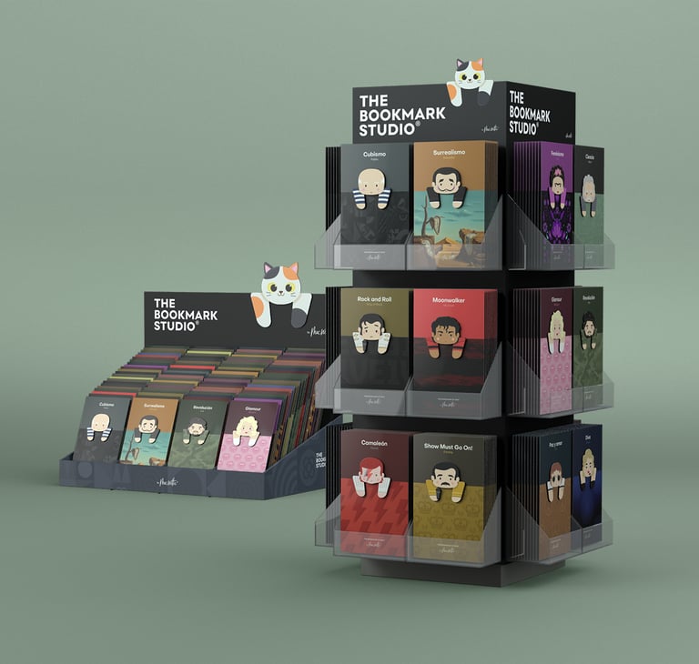 Los puntos de libro magnéticos de The Bookmark Studio son prácticos, resistentes y totalmente personalizables. Cada expositor puede reunir distintas colecciones, adaptándose al estilo de tu tienda o a los gustos de tus clientes. Con sus diseños temáticos, son recuerdos originales que combinan creatividad y funcionalidad.