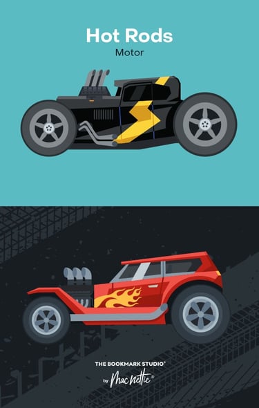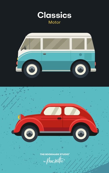Coches, motos y vehículos clásicos en diseños llenos de carácter. Una colección pensada para amantes de los motores y los viajes.