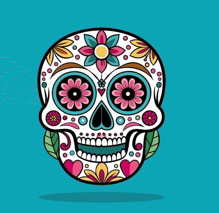 Calaveras mexicanas coloridas y alegres. Una colección vibrante que celebra la tradición del Día de los Muertos con estilo festivo.