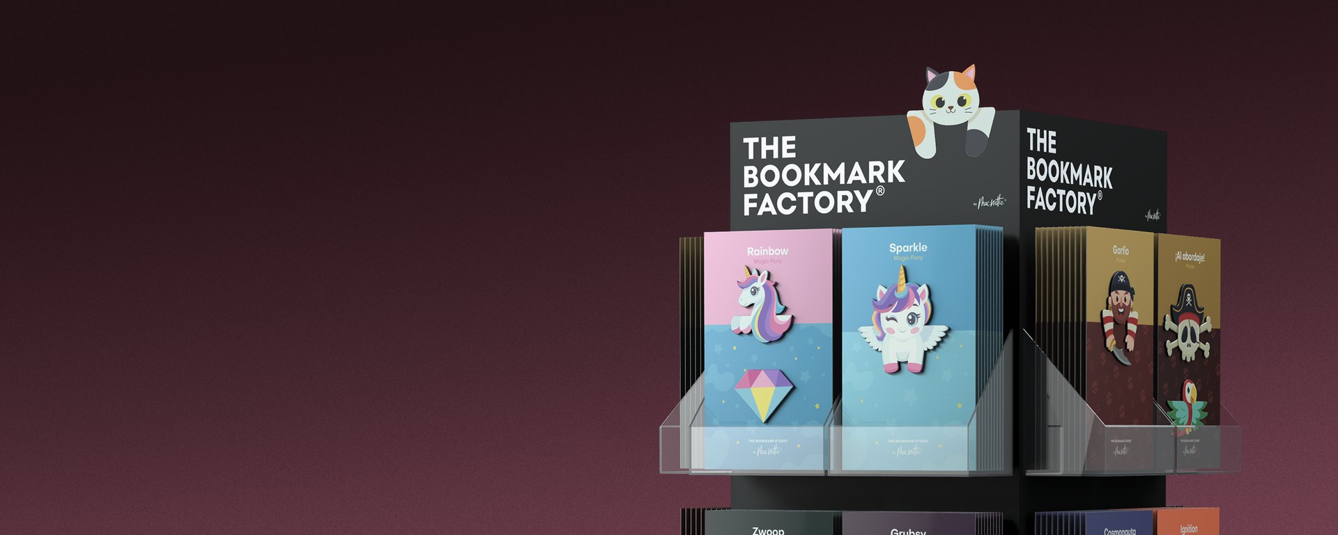 Los puntos de libro magnéticos de The Bookmark Studio son prácticos, resistentes y totalmente personalizables. Cada expositor puede reunir distintas colecciones, adaptándose al estilo de tu tienda o a los gustos de tus clientes. Con sus diseños temáticos, son recuerdos originales que combinan creatividad y funcionalidad.