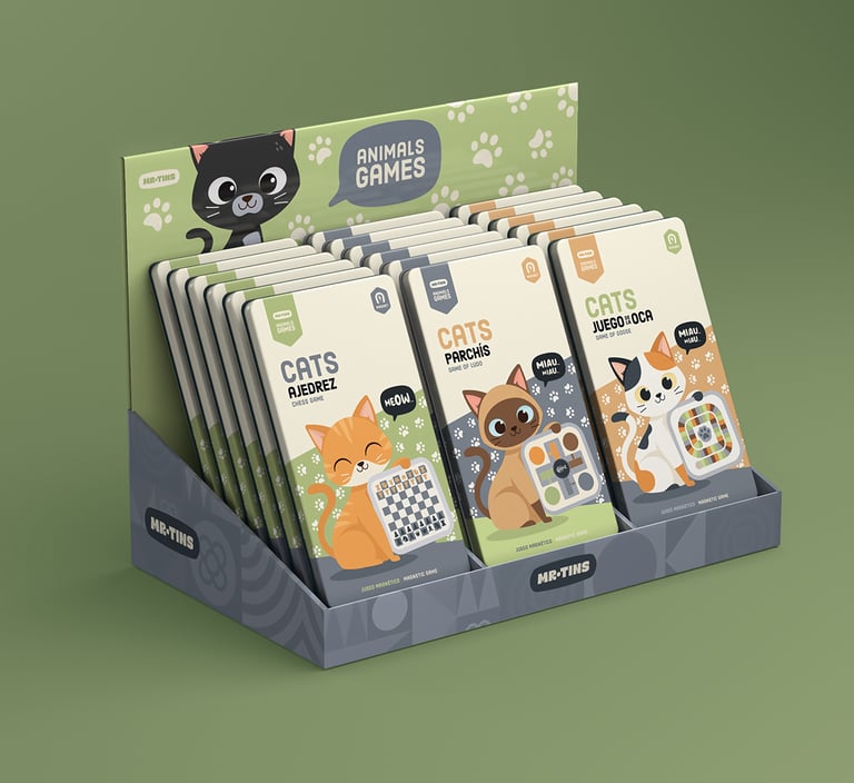 Los juegos Mr Tins son prácticos, resistentes y personalizables. Cada expositor puede reunir diferentes colecciones, adaptándose al estilo de tu tienda o público. Con sus diseños temáticos, son perfectos como souvenir o recuerdo original que combina tradición y modernidad.