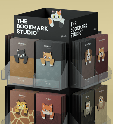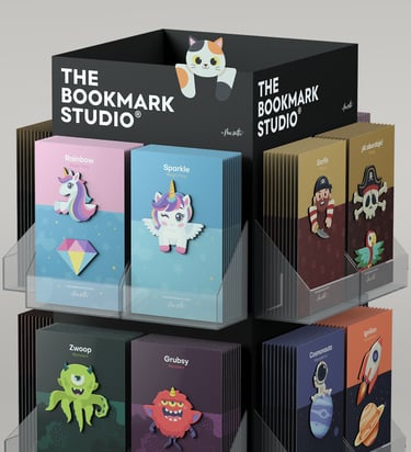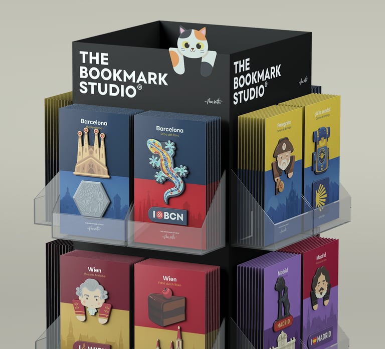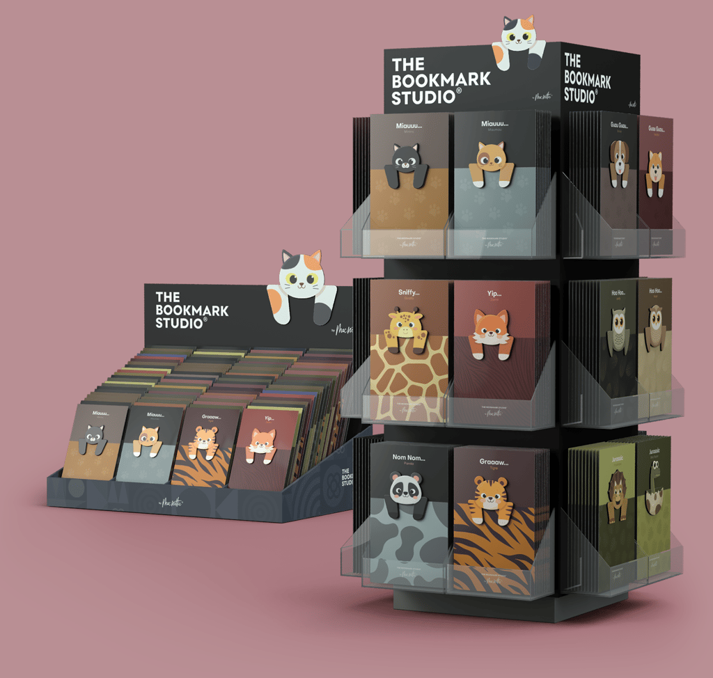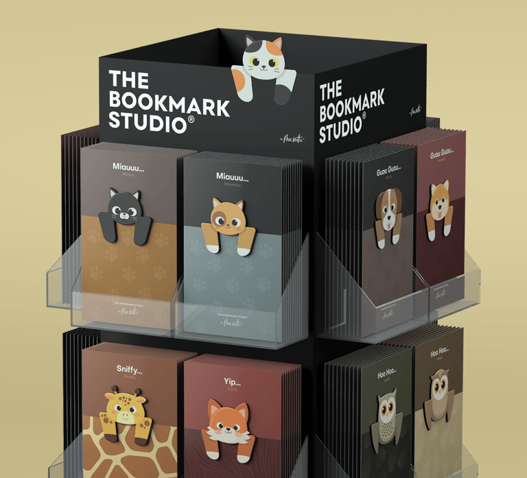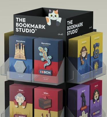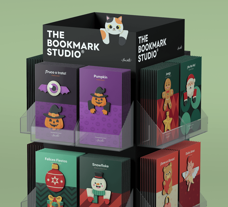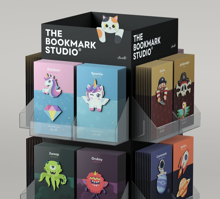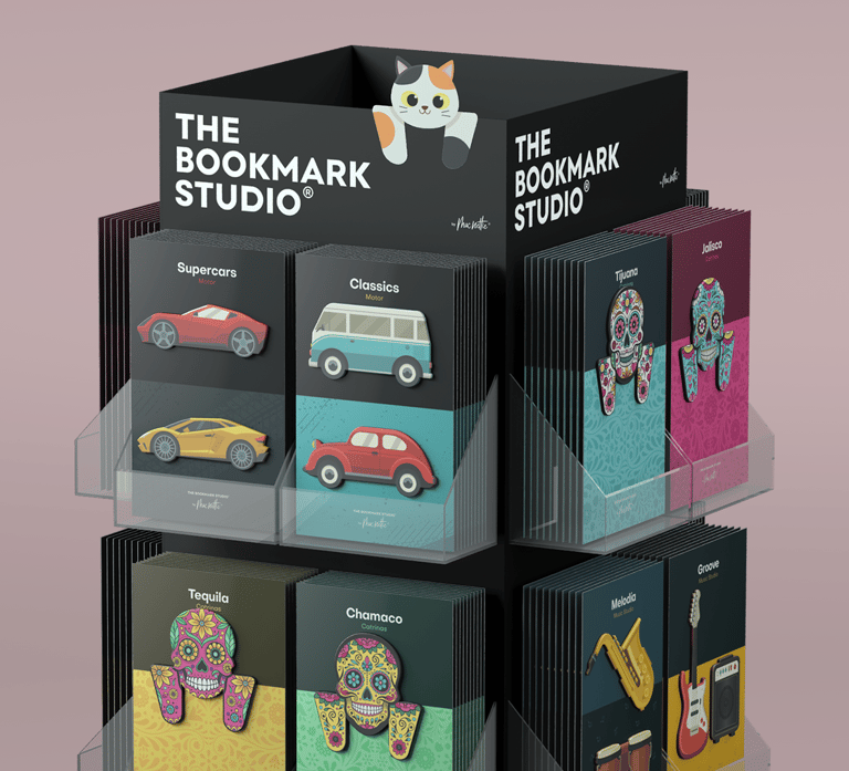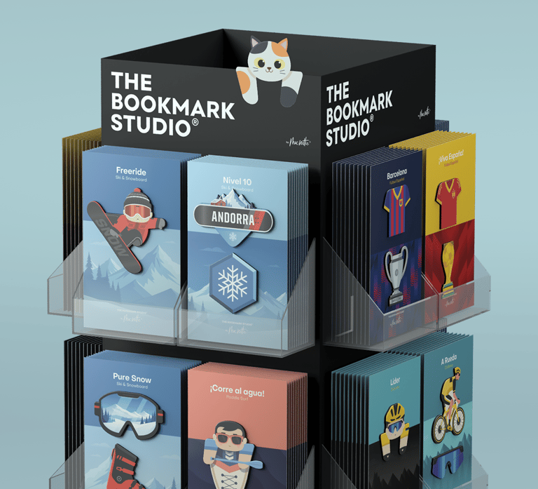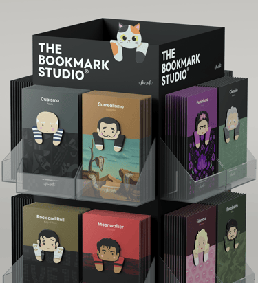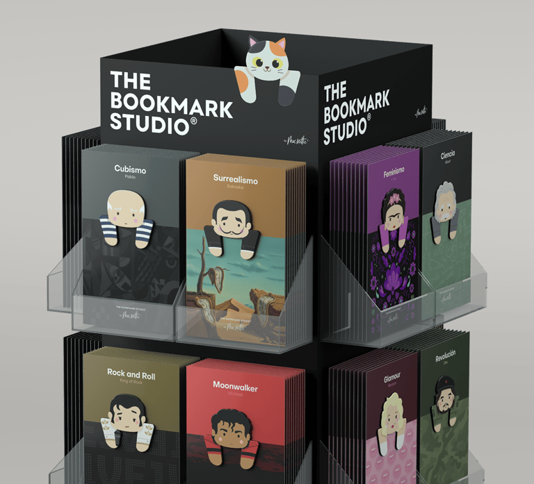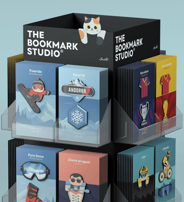 En The Bookmark Studio puedes diseñar tu expositor a medida: elige entre varios modelos, combina los puntos de libro magnéticos que más te gusten y personaliza las temáticas según los gustos de tus clientes. Una forma creativa de sorprender y atraer a cada lector.